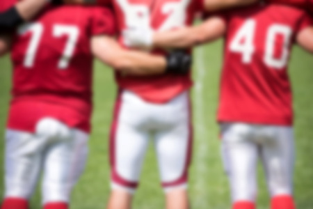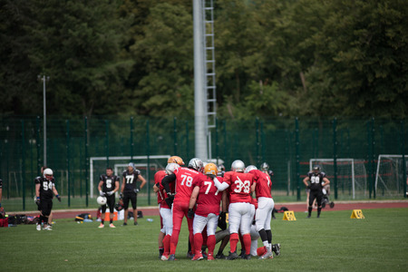 RUSSIA, TROITSK CITY - JULY 11: Unidentified players of Spartans team just before Russian american football Championship game Spartans vs Raiders 52 on July 11, 2015, in Moscow region, Troitsk city, Russia