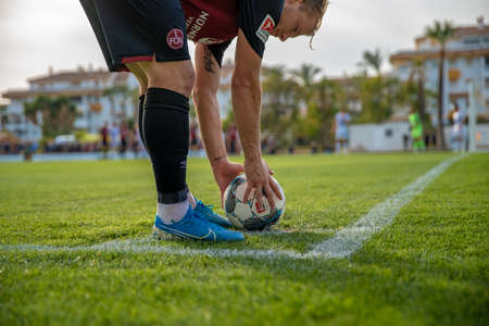 Marbella - January 17, 2020: a player prepares for a corner kick the ball in the match on the soccer field