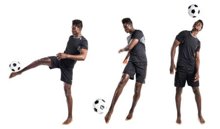 soccer football sports player, asian korean man with motions in studio background