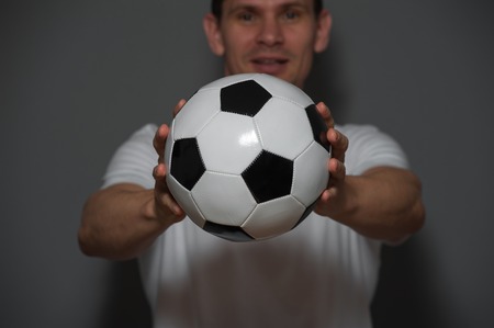 Close-up male soccer or football player with ball