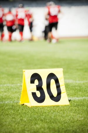 A red Football thirty yard marker