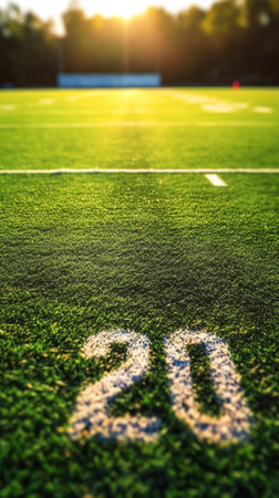 Twenty yard line marker on a football field