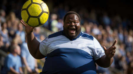 Joyful soccer player having fun on the field, celebrating with a playful smile during an energetic match.