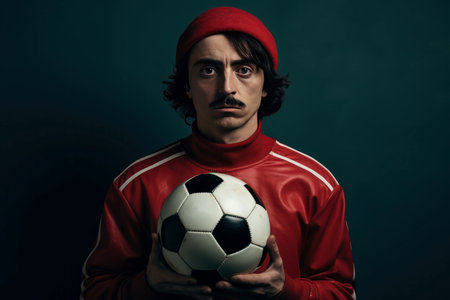 Soccer player holding soccer ball