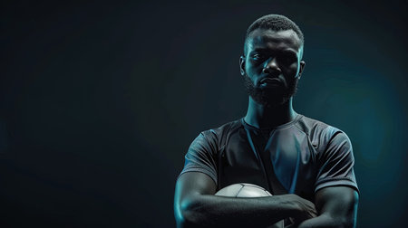 Portrait of african american man with ball on black background, ai generative