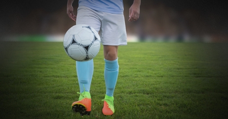 Digital composite of Soccer player on grass with football solo