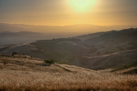 Sunrise over the hills and valleys of the countryside