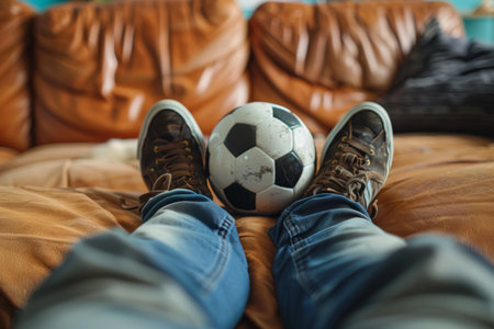 Sport fans Celebrating Goal in Home Soccer Match Viewing. Generative AI