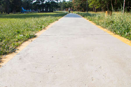 Long concrete walkway in the summer green garden