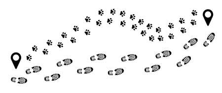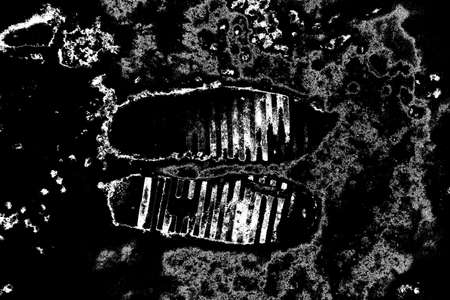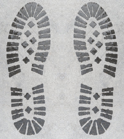 Sneakers step black mark. Human footprints. Footwear steps. Footstep print textured steps. Shoes prin on asphalt and ground