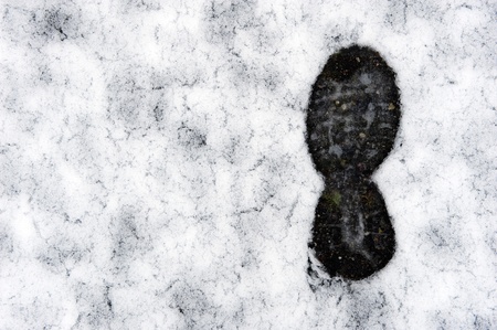 A single footprint in the melting snow