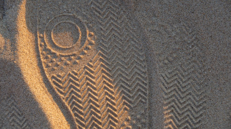 Close-Up of Shoe Prints in the Sand. High quality photo