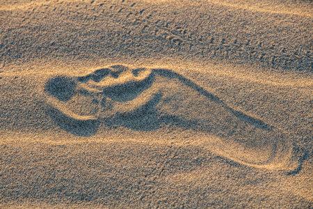 one footprints on the sand of the beach. crisp prints