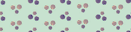 Ditsy vector polka dot border with scattered hand drawn groups of small striped circles in orange, blue indigo purple. Seamless dense dotted border. Modern round circle design for ribbon, edging, trim