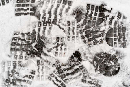 Dirty footprints in the snow in the winter.