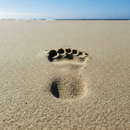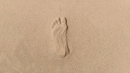 A lonely footprint of a bare foot on an empty sandy beach