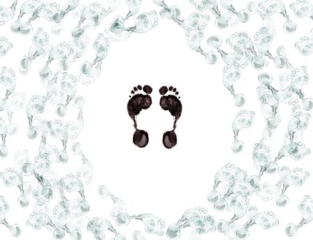 Colorful foot prints on a white background. Copy space. Banner.