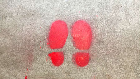 Spray Print on Ground, Red Footprint on Ground, Social Distance Sign