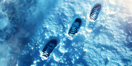 Footprints in the snow at sunset highlighting natures serene beauty and tranquility