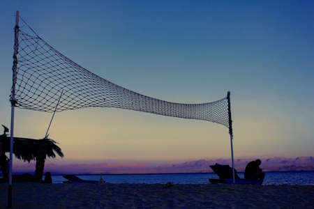 Stretched net on the beach in twilight