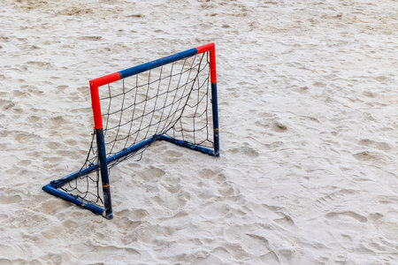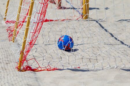 football summer sport. closeup goal net on a sandy beach outdoor