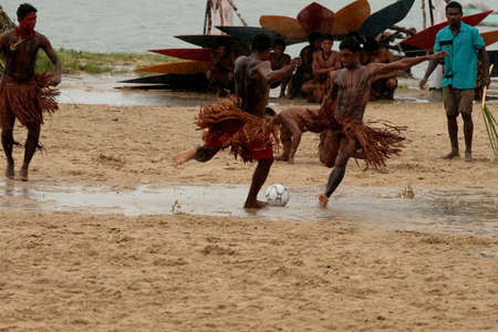 santa cruz cabralia, bahia / brazil - april 20, 2009: indians of the Pataxo ethnicity are seen during a soccer match at indigenous games in the Coroa Vermelha village in the city of Santa Cruz Cabralia.