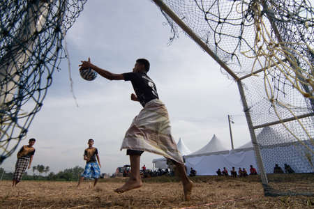 Penanti, Penang/Malaysia - Jul 01 2018: Malays teenager play football at paddy field. (bola sepak bendang)