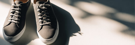 A pair of sneakers is positioned diagonally on a clean white background. The soft shadow adds depth while highlighting the sneaker
