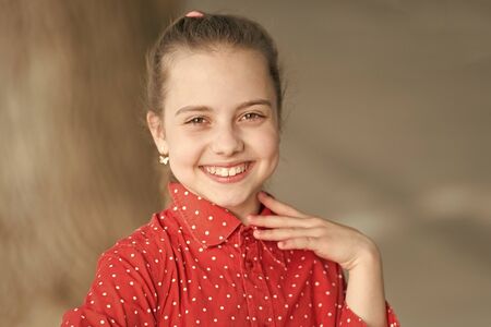 Happiness joy and fun concept. Laughing all day. Kid long hair happy smile face. Summer holidays. Happy day. Smile my best accessory. Girl carefree child. Smile suits her. International childrens day