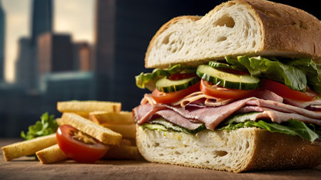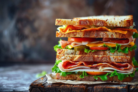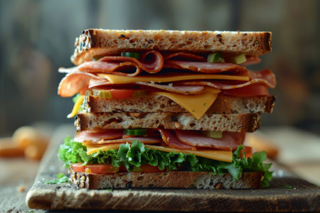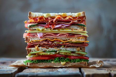 Sandwich. Appetizing multi-layered sandwich with variety of fillings. Generative AI