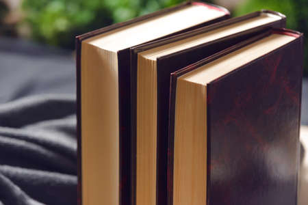 Books are close-up. A stack of books with the inscription on the cubes, Hobbies reading books