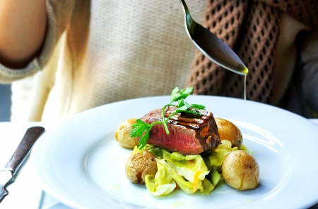 Venison fillet and potato puree, gourmet dish