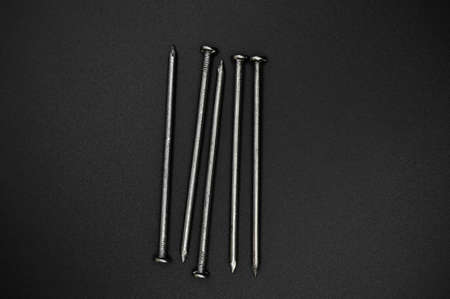 A lot of construction iron pointed nails, industrial parts, isolated on balck background