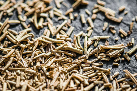 Rosemary closeup on luxury stone background as flat lay, dry food spices and recipe ingredients