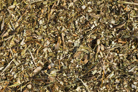 Background made of dried echinacea herb for medical use. Echinacea dried flowers backdrop. Echinacea root herb used in alternative herbal medicine to boost the immune system. Asteraceae, purpurea.