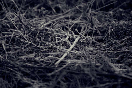 Pile of interwoven dry branches and twigs in a forest. Concept of nature, wood texture, outdoor scenery, organic material.