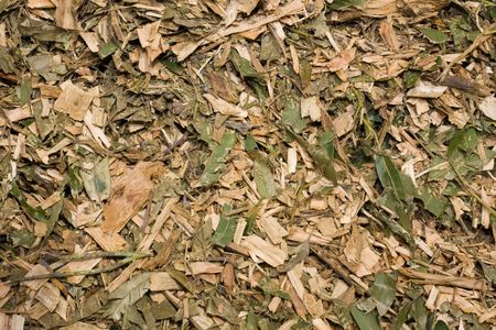 Sawdust shavings and shredded branches folded together to form a pattern for the background