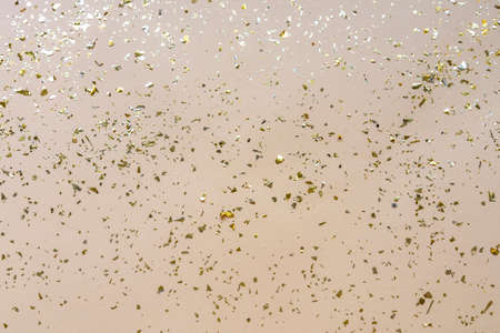 Golden foil confetti on blue background. Festive colorful bright background. Gold on blue