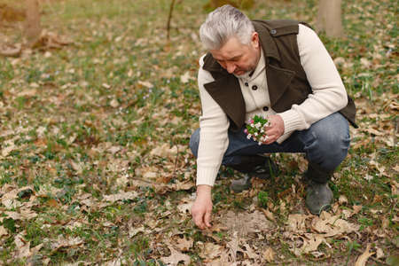 Elegant adult man in a spring forest