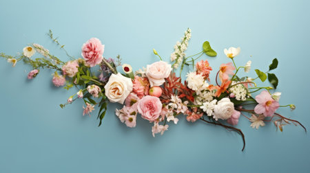 Arrangement of spring flowers against a pastel colors background. Blooming concept. Flat lay. --ar 16:9 --v 6 Job ID: 7e0d66c6-a2a6-4a47-b435-82e62e0ee70d