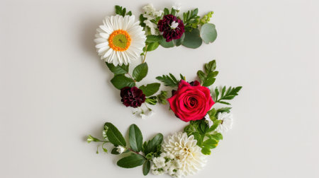 Letter S Floral background with colorful flowers and daisies. Top view.