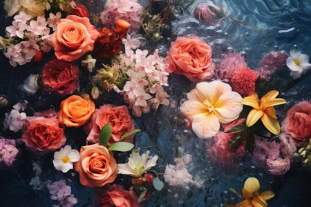 Floral Symphony: Captivating Aerial View of Assorted Flowers Gracefully Adorned on Water