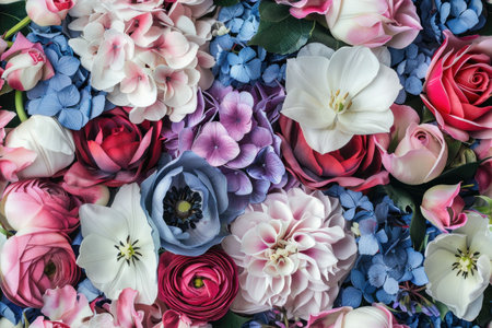 A vibrant and colorful background of various fresh flowers.