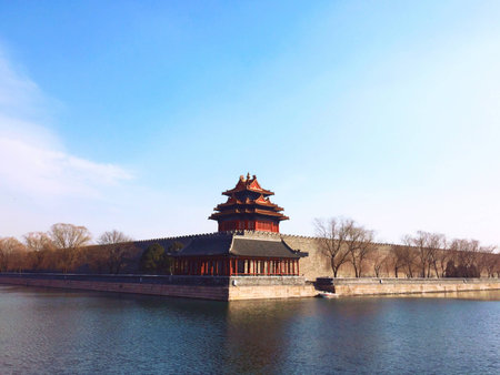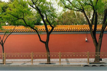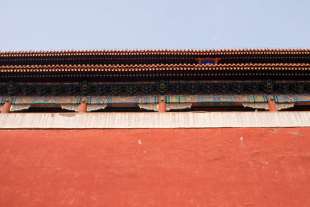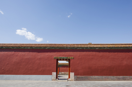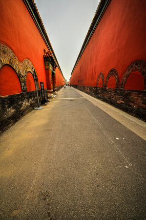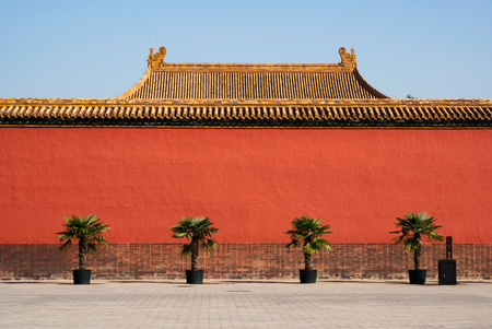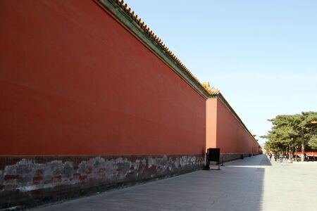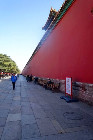 The red wall of the Forbidden City, Beijing, China. It is a UNESCO World Heritage Site.