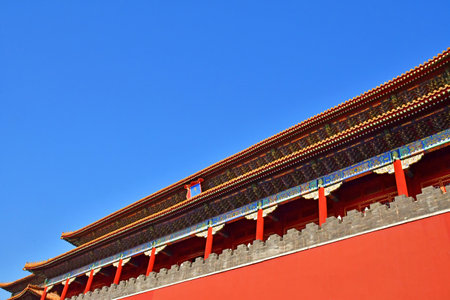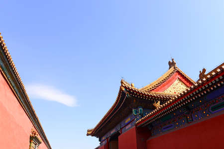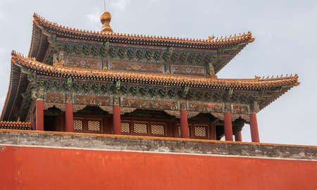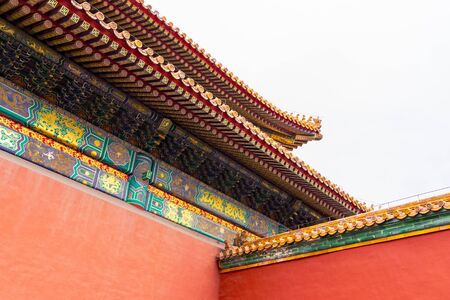 Facade and roofs details, Forbidden City in Beijing. Imperial palace in China.