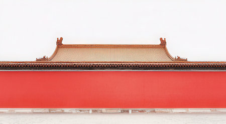 Red wall of the Forbidden City with shadow reflection, Beijing, China