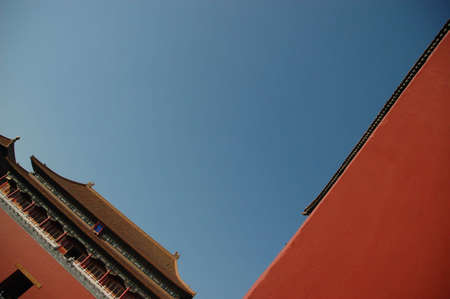 Red exterior wall of forbidden city in Beijing. High quality photo