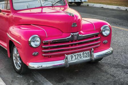 Cropped front view of a restored retro car.