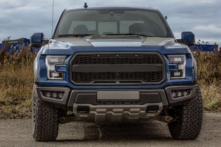 KUALA LUMPUR, MALAYSIA - DEC 3, 2019 : Close up front grill new Ford Raptor displayed at Kuala Lumpur International Motor Show