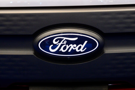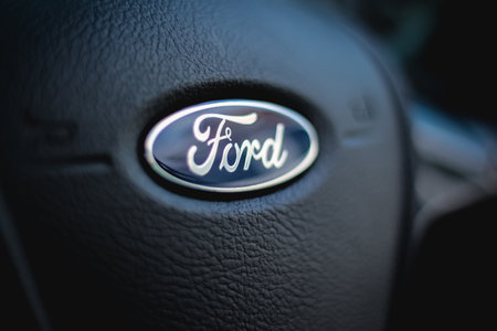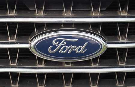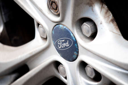 Bucharest, Romania - October 22, 2012: Ford logo is displayed on a car in Bucharest. Ford Motor Company is an American automaker with its headquarters in Dearborn, Michigan and was founded by Henry Ford.